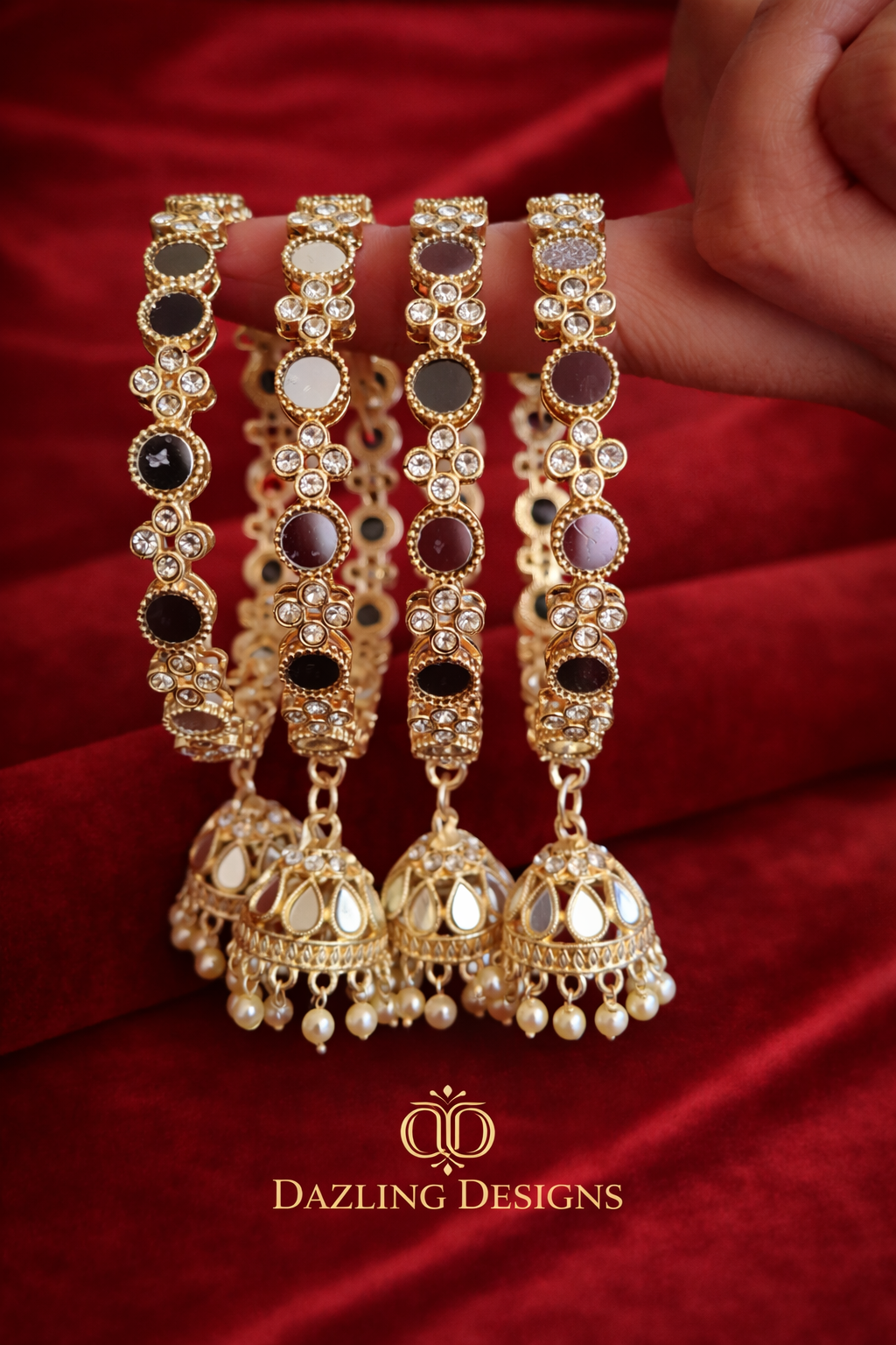 These Beautifully Crafted Bangles Feature An Intricate Sequence Of Circular Stone Accents And Delicate Floral Motifs, Creating A Harmonious Blend Of Sparkle And Tradition.