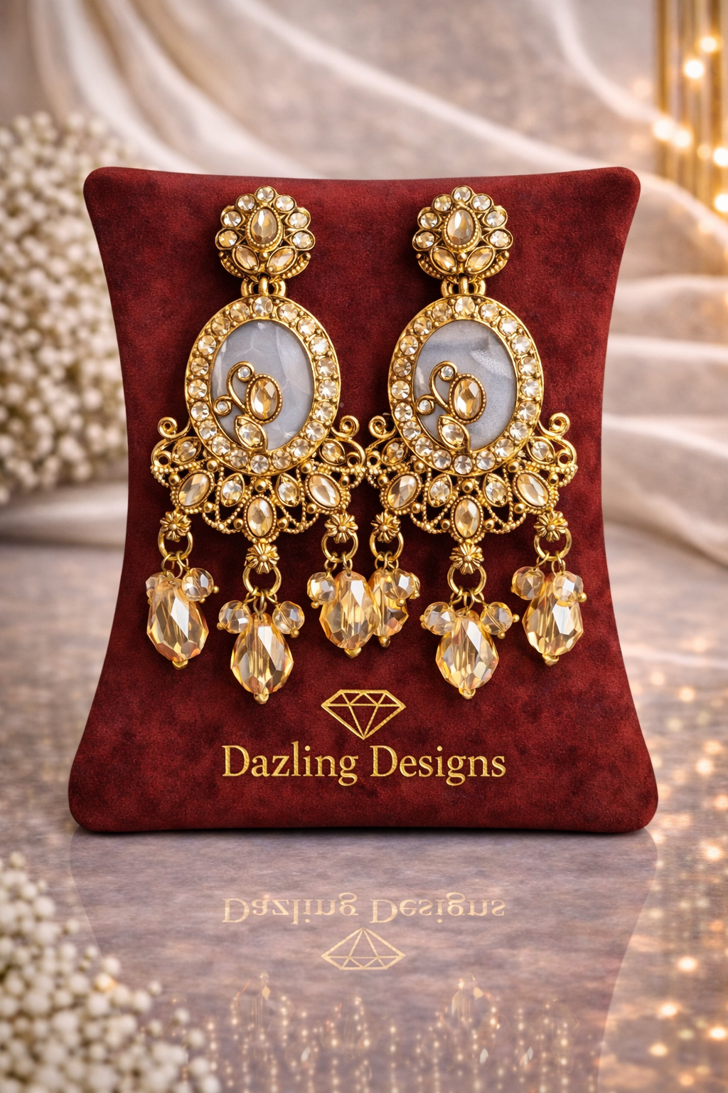Be the first to review “Royal Gold And Crystal Statement Earrings”