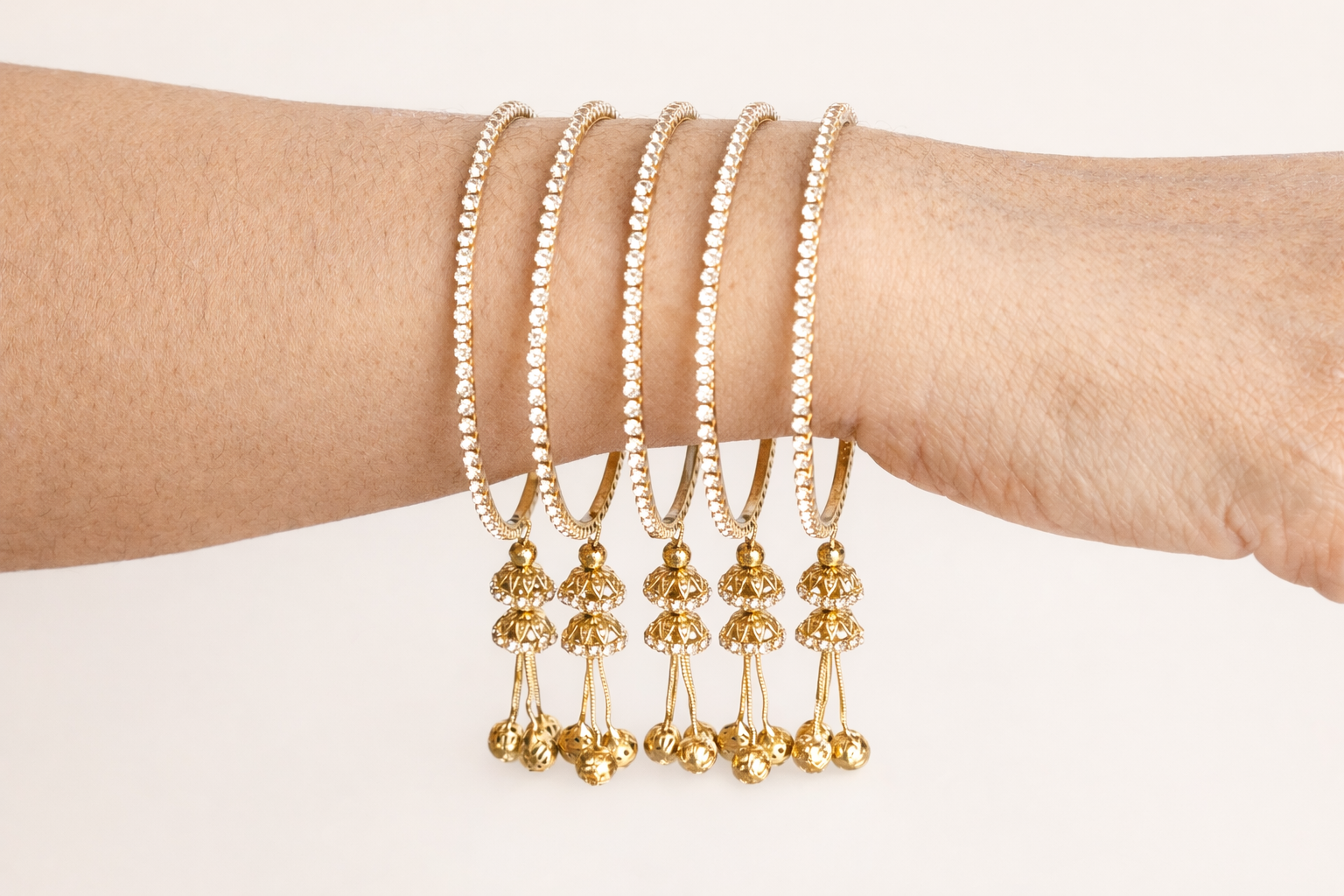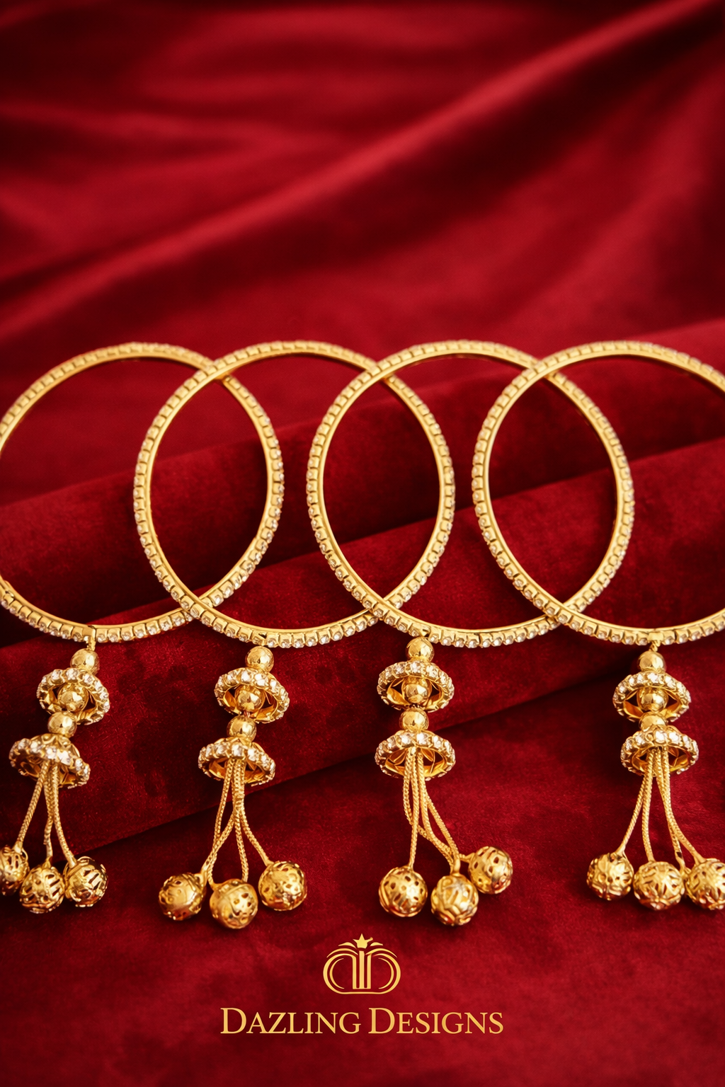 Designed With A Sleek Circular Frame And Intricate Textured Detailing, These Bangles Are Beautifully Enhanced With Elegant Dangling Tassels That Sway With Every Movement.