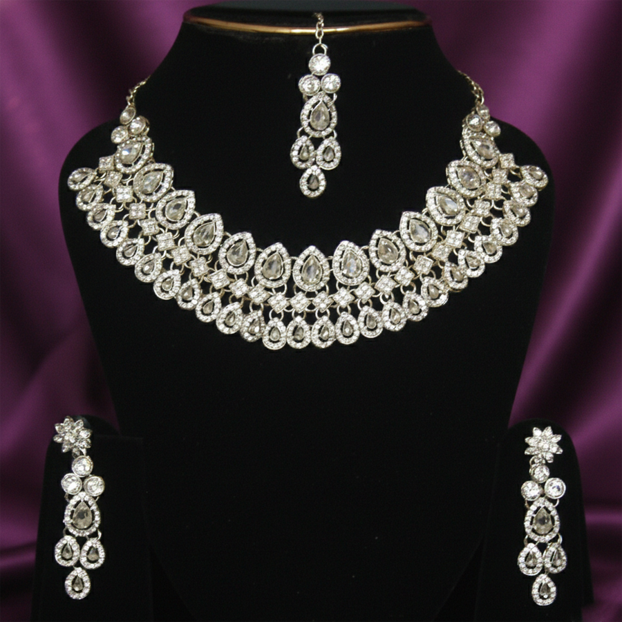 Embrace a look of timeless glamour with this American Diamond Silver-Toned Bridal Set. Designed for the modern bride or festive guest, this set offers a high-impact sparkle that mimics the fire of real diamonds.