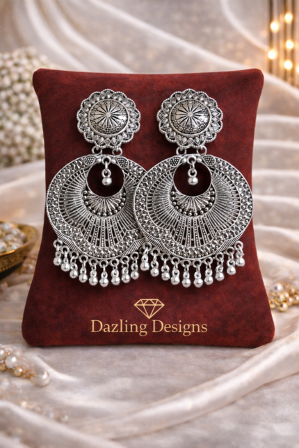 Tribal Aura Oxidised Silver Chandbali Earrings