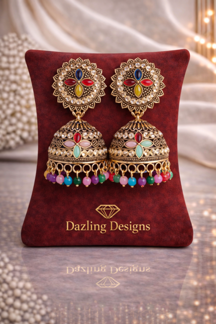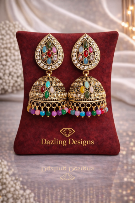 Multicolor Kundan Jhumka Earrings With Beaded Drops